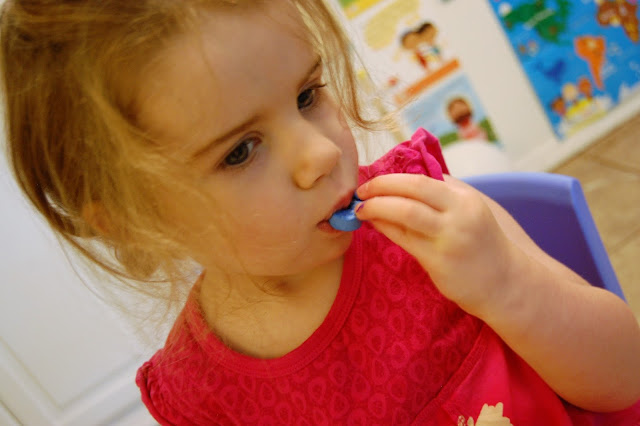 What really caught me off guard was how quickly Sweet Pea memorized the amount of dots representing a certain digit! After a while, she no longer needed to count the dots, she would say, "Four!" or "Six!" I definitely wasn't expecting her to catch on that fast.
